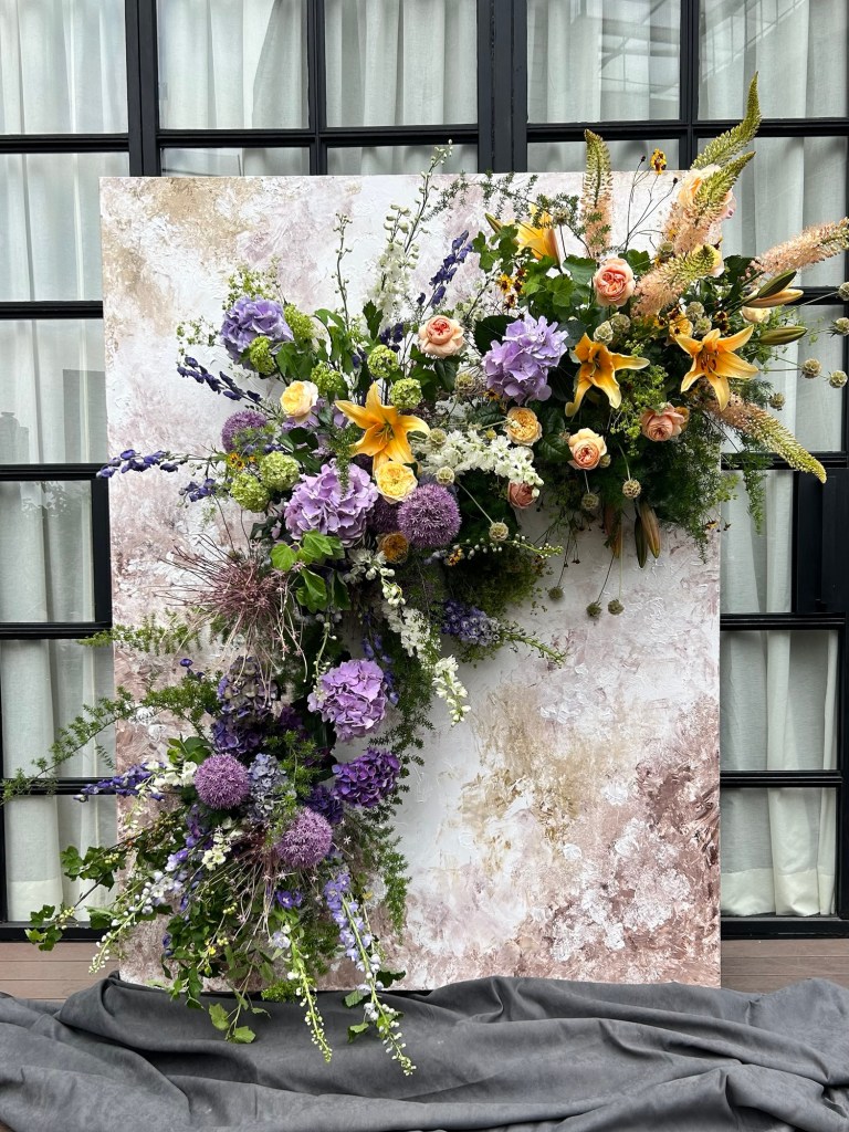 - 立體感(向前伸展的繡球和百合)